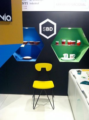 La silla Nueva W, junto con Colbo Gres Rojo, en el Stand del Sello Buen Diseño.