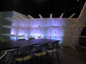 Silla Nueva W en la Galería Cosmocosa junto a las obras de Aldo Paparella, Alberto Greco, Kenneth Kemble, Lucio Fontana, Luis Wells, León Ferrari, Eduardo Costa, Noemí de Benedetto, Eduardo Costa, Ignacio Iasparra y mobiliario Krethaus.