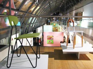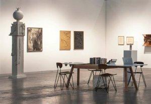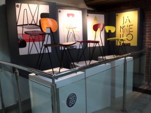 Silla Nueva W en la Galería Cosmocosa junto a las obras de Aldo Paparella, Alberto Greco, Kenneth Kemble, Lucio Fontana, Luis Wells, León Ferrari, Eduardo Costa, Noemí de Benedetto, Eduardo Costa, Ignacio Iasparra y mobiliario Krethaus.